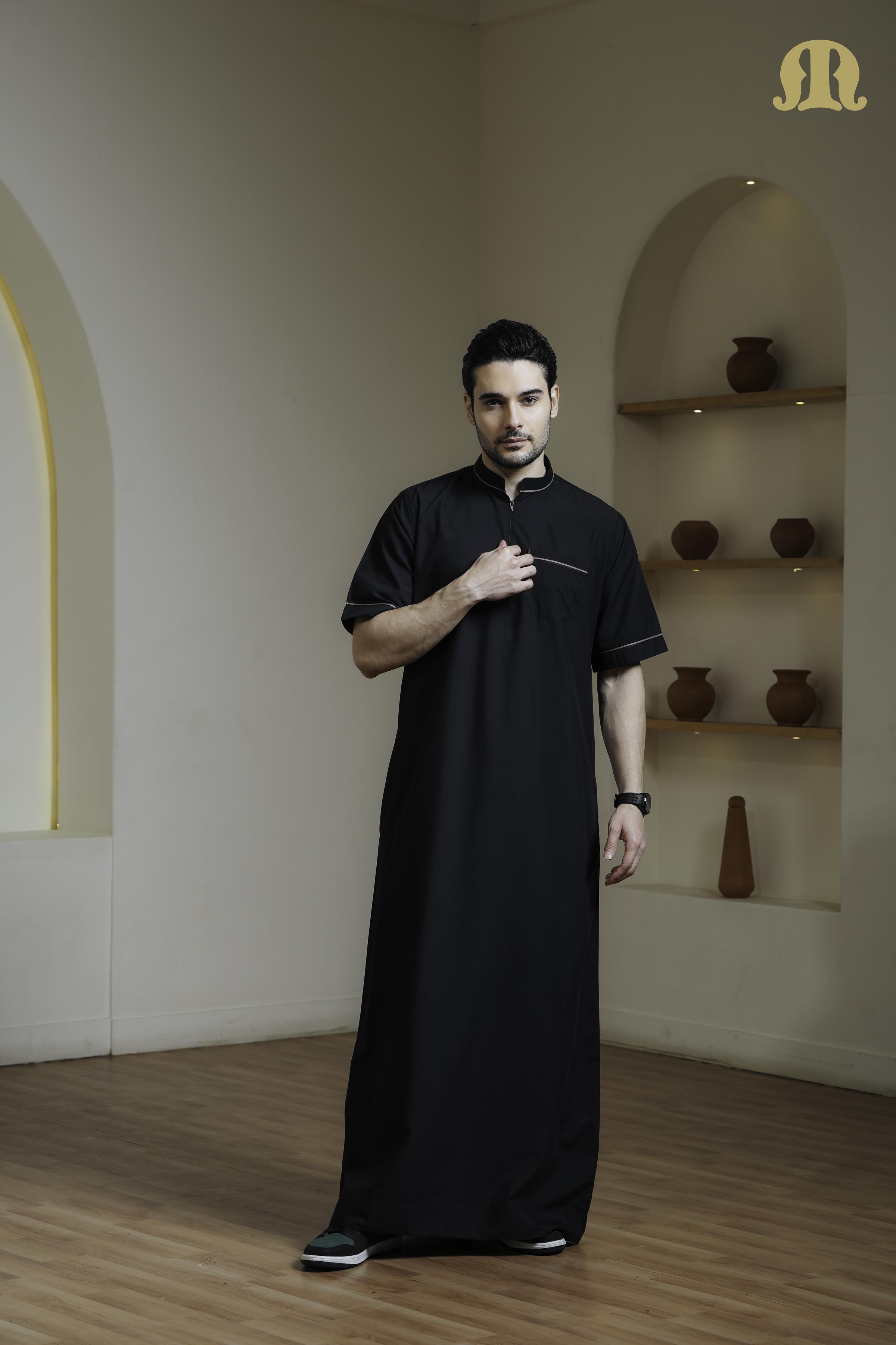 Designed for comfort with refined detailing, this Beige Andak Half Sleeve Thobe offers a perfect balance of practicality and traditional elegance. Its clean, streamlined silhouette ensures ease of movement, making it ideal for everyday wear in all climates. Crafted from premium Poly Viscose fabric, the thobe combines the breathability of cotton with the durability and wrinkle resistance of polyester. The result is a lightweight, easy-to-maintain garment that stays comfortable and presentable throughout the day. The design is elevated by an embroidered, adding a touch of sophistication, while embroidered sleeves enhance the overall look with subtle craftsmanship. The half sleeves provide a relaxed, contemporary feel without compromising modesty or style.